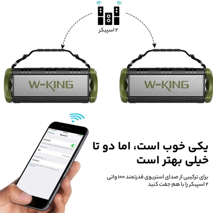 اسپیکر بلوتوثی قابل حمل دبلیو-کینگ مدل D8 همراه با میکروفن