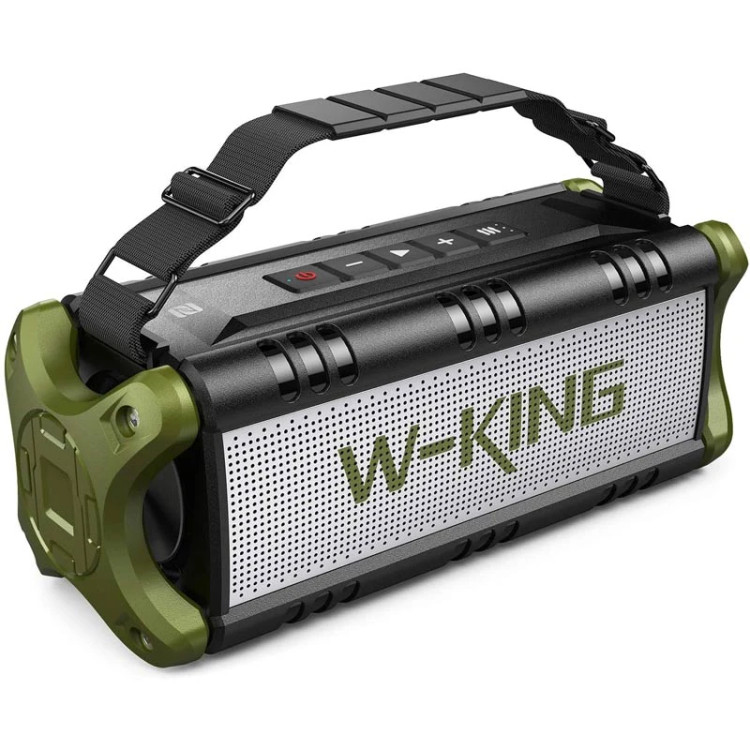 بدنه پلاستیکی اسپیکر بلوتوثی رم و فلش خور W-king با استفاده از متریال پلاستیکی ساخته شده و مقاومت نسبتا مناسبی در برابر ضربه و شوک را دارا می باشد. این اسپیکر علاوه بر متریال ساخت مقاوم خود موفق به دریافت استاندارد IPX5 شده است تا این اسپیکر در بابر رطوبت مقاوم باشد. قسمت جلویی این اسپیکر میزبان درایو های پر قدرت آن می باشد که توسط یک توری مورد محافظت قرار گرفته اند. کلید های کنترل موسیقی و دسته اسپیکر در لبه بالایی این محصول قرار دارند و دسترسی به آن ها توسط کاربران کار چندان دشواری به نظر نمی رسد. در قسمت پشتی و لبه های سمت راست و چپ اسپیکر هم شاهد استفاده از پورت های اتصال و توییتر هستیم. ساب ووفر های 70 میلی متری و توییتر های 30 میلیمتری اسپیکر W-King مجموعا توانی معادل 50 وات را برای آن به ارمغان آورده اند. ساب ووفر های این اسپیکر 50 واتی امکان ارائه آمپیدانس 10 اهم و توییتر های آن نیز آمپیدانس 8 اهم را در حداکثر توان 50 واتی آن به کاربران ارائه می کنند. درایو های اسپیکر D8 در محدوده فرکانس 60 الی 20 کیلوهرتز فعالیت می کنند و حساسیت سیگنال آن ها نسبت به نویز 80 دسی بل می باشد تا وضوح و بلندی صدای مناسبی را برای این محصول فراهم کنند. محدوده فرکانس W-King مقداری پایین تر از محصولات دیگر می باشد اما با به خوبی می تواند محدوده شنوایی کاربران را پوشش دهد. اتصال با سیم اسپیکر بلوتوثی D8 به دبگر دستگاه ها توسط پورت 3٫5 میلیمتری صدا و USB انجام می شود. چیپست بلوتوث نسخه 4٫2 این محصول هم امکان اتصال بدون سیم به تلفن همراه، تبلت و دیگر گجت های بلوتوثی را برای کاربران فراهم می کند. تراشه NFC دستگاه پخش موسیقی W-king هماهنگی گجت های مختلف را با آن برای کاربران راحت و سریع تر کرده است. از دیگر قابلیت های بلوتوث این دستگاه می توان به پشتیبانی از قابلیت TWS اشاره کرد که اتصال چند اسپیکر مشابه را به یک گجت پخش کننده موسیقی برای کاربر ممکن می کند.