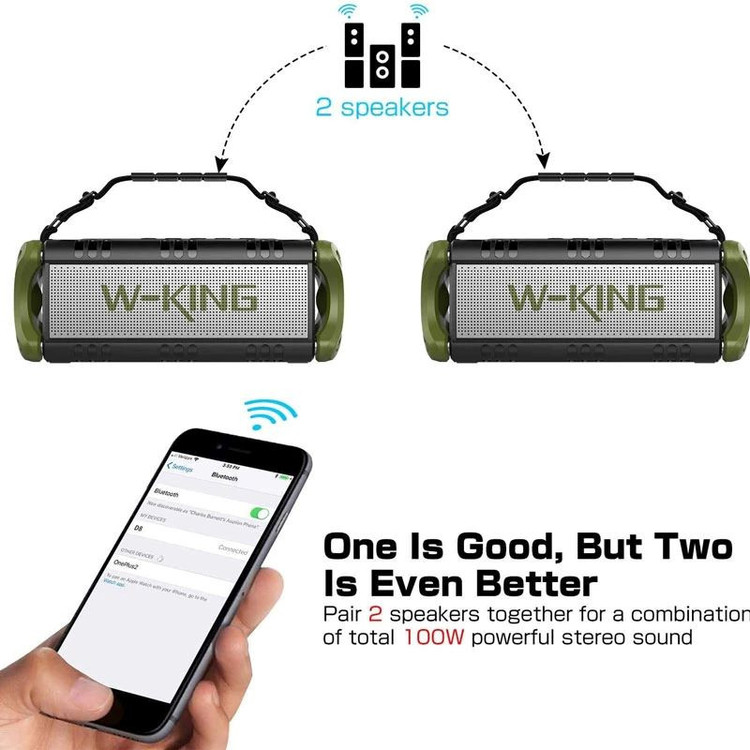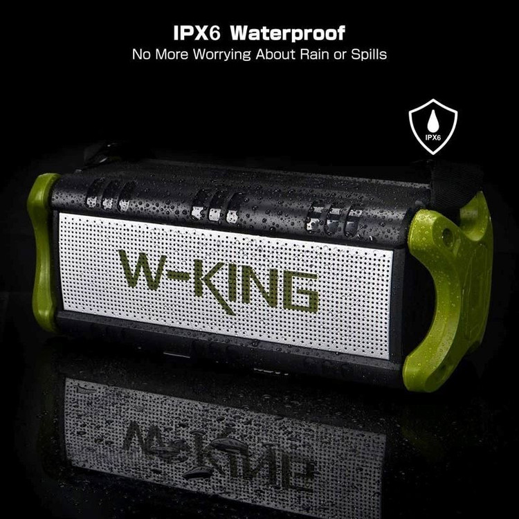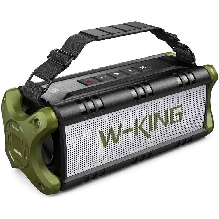 بدنه پلاستیکی اسپیکر بلوتوثی رم و فلش خور W-king با استفاده از متریال پلاستیکی ساخته شده و مقاومت نسبتا مناسبی در برابر ضربه و شوک را دارا می باشد. این اسپیکر علاوه بر متریال ساخت مقاوم خود موفق به دریافت استاندارد IPX5 شده است تا این اسپیکر در بابر رطوبت مقاوم باشد. قسمت جلویی این اسپیکر میزبان درایو های پر قدرت آن می باشد که توسط یک توری مورد محافظت قرار گرفته اند. کلید های کنترل موسیقی و دسته اسپیکر در لبه بالایی این محصول قرار دارند و دسترسی به آن ها توسط کاربران کار چندان دشواری به نظر نمی رسد. در قسمت پشتی و لبه های سمت راست و چپ اسپیکر هم شاهد استفاده از پورت های اتصال و توییتر هستیم. ساب ووفر های 70 میلی متری و توییتر های 30 میلیمتری اسپیکر W-King مجموعا توانی معادل 50 وات را برای آن به ارمغان آورده اند. ساب ووفر های این اسپیکر 30 واتی امکان ارائه آمپیدانس 10 اهم و توییتر های آن نیز آمپیدانس 8 اهم را در حداکثر توان 30 واتی آن به کاربران ارائه می کنند. درایو های اسپیکر D8 در محدوده فرکانس 60 الی 20 کیلوهرتز فعالیت می کنند و حساسیت سیگنال آن ها نسبت به نویز 80 دسی بل می باشد تا وضوح و بلندی صدای مناسبی را برای این محصول فراهم کنند. محدوده فرکانس W-King مقداری پایین تر از محصولات دیگر می باشد اما با به خوبی می تواند محدوده شنوایی کاربران را پوشش دهد. اتصال با سیم اسپیکر بلوتوثی D8 به دبگر دستگاه ها توسط پورت 3٫5 میلیمتری صدا و USB انجام می شود. چیپست بلوتوث نسخه 4٫2 این محصول هم امکان اتصال بدون سیم به تلفن همراه، تبلت و دیگر گجت های بلوتوثی را برای کاربران فراهم می کند. تراشه NFC دستگاه پخش موسیقی W-king هماهنگی گجت های مختلف را با آن برای کاربران راحت و سریع تر کرده است. از دیگر قابلیت های بلوتوث این دستگاه می توان به پشتیبانی از قابلیت TWS اشاره کرد که اتصال چند اسپیکر مشابه را به یک گجت پخش کننده موسیقی برای کاربر ممکن می کند. بستن